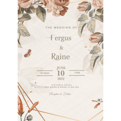 Personnalisez votre invitation de mariage en choisissant les textes, les polices et leurs coloris. Démarquez-vous à l’aide de nos modelés d’invitation en mariage qui reflètent votre professionnalisme et votre organisation. Distribuez-les pour prévenir vos proches de la date et l’heure de votre mariage